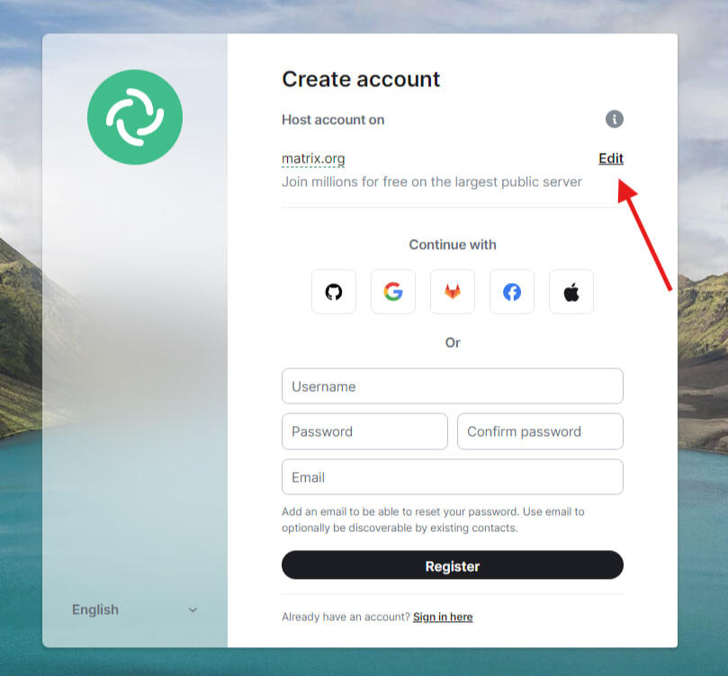 Once you have the application opened you will need to create a new account. Before you proceed, please edit the host that you will create the account with by pressing the Edit button.
